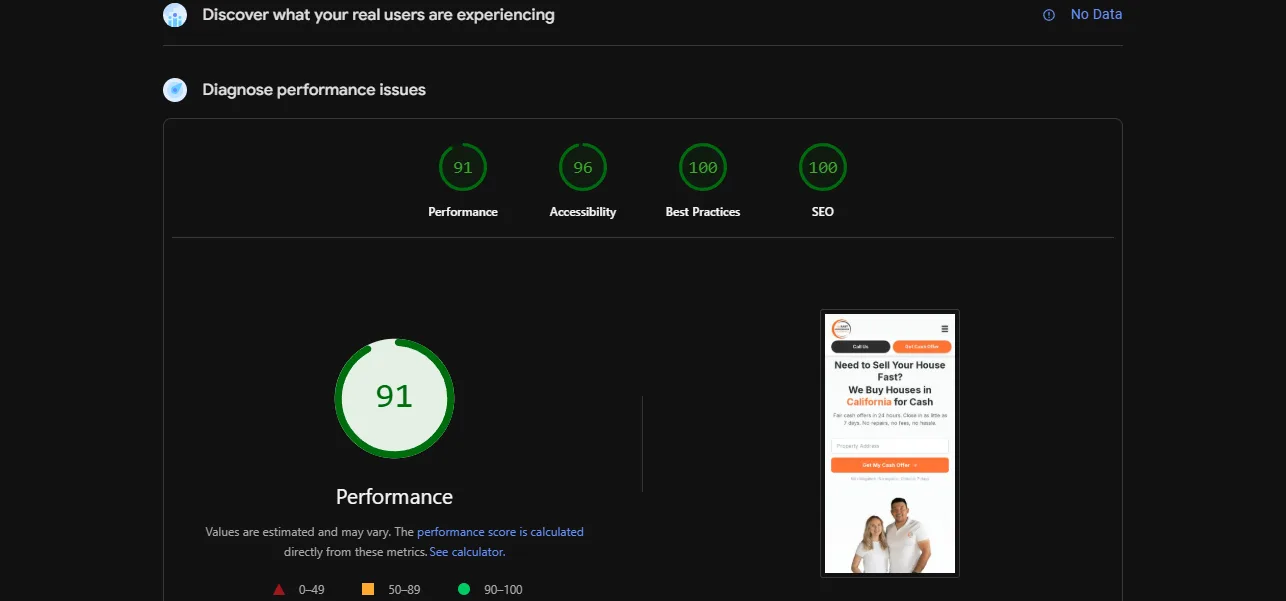 Carrot and Grumpy Hare charge $99-$149/month forever for a WordPress site you will never truly own. We build on modern infrastructure that loads in under a second on mobile — where 80% of motivated sellers are searching.