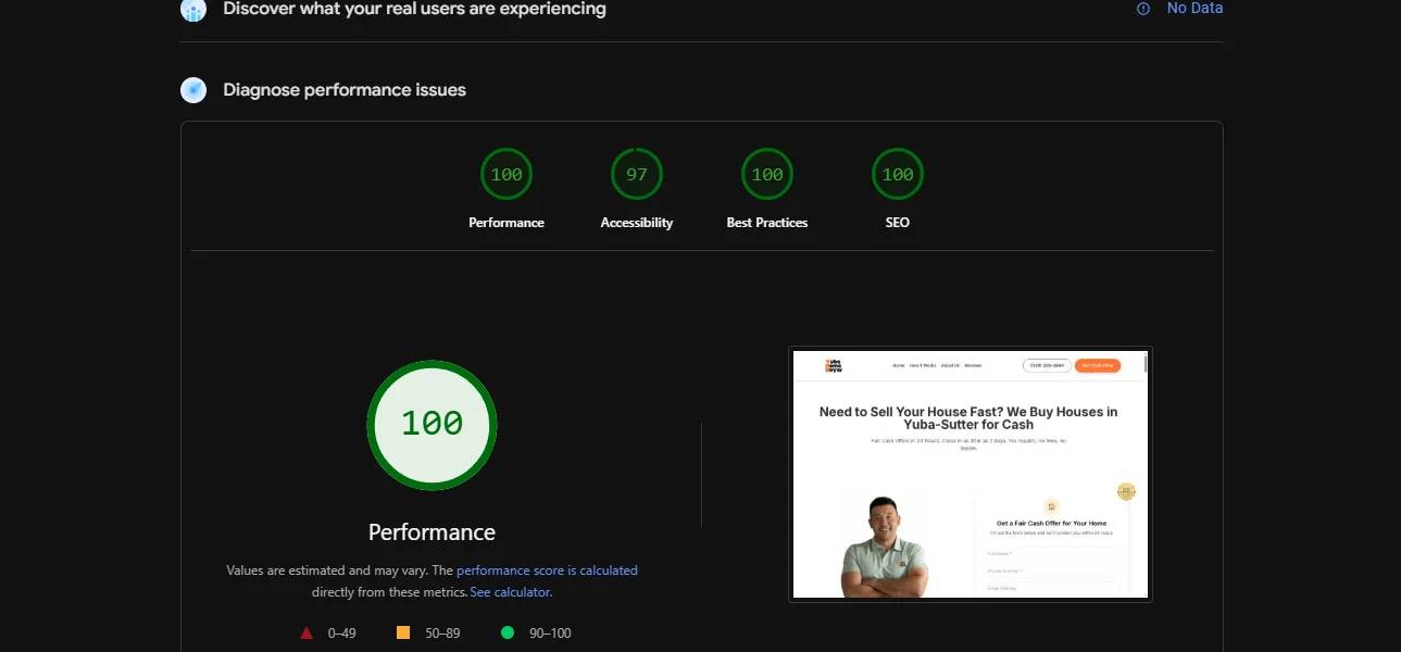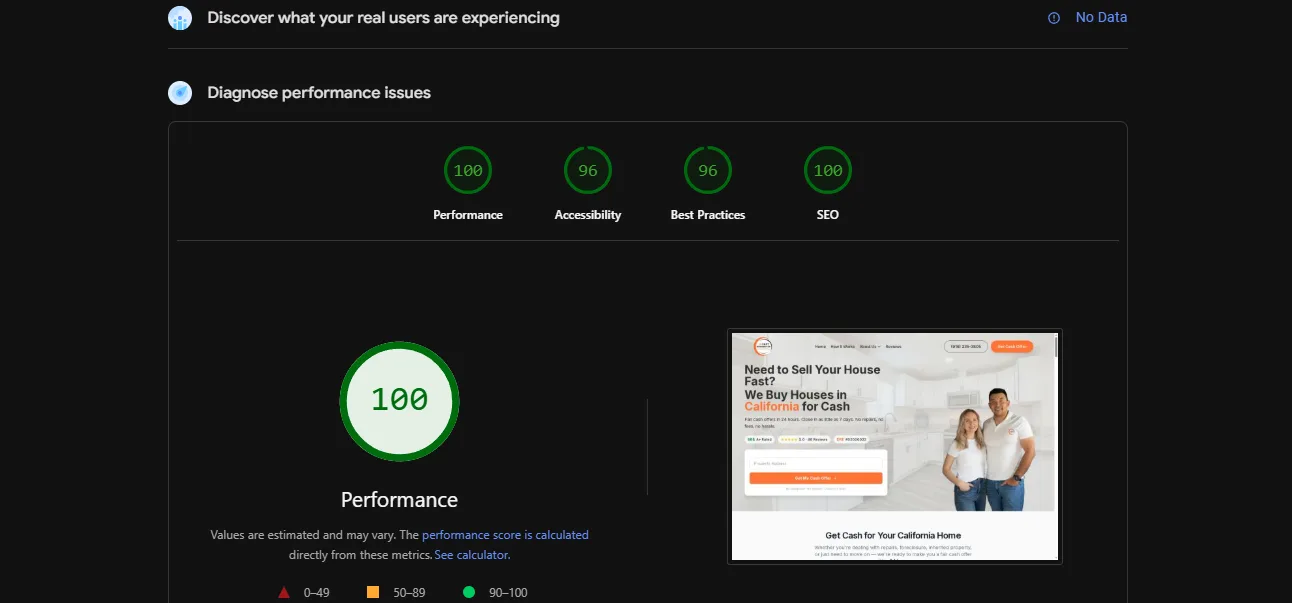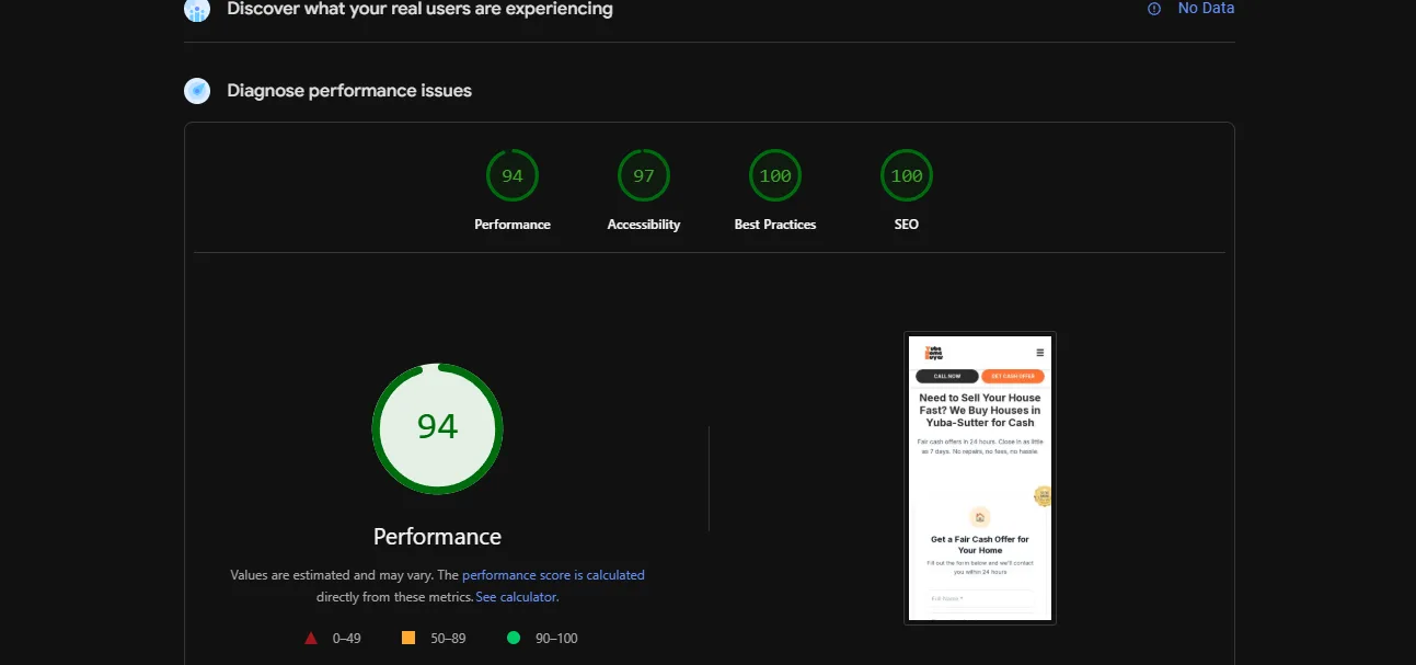 Scores verified via Google PageSpeed Insights API v5